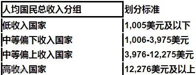 按世界银行公布的数据,2014年的最新收入分组标准为:
