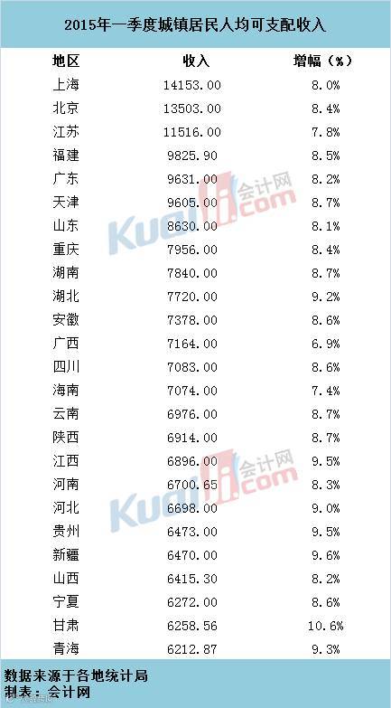 7月,中国各地2015年上半年居民收入数据陆续出炉。据统计,截至7月26日,全国至少已有27省份公布了上半年居民人均可支配收入。其中,