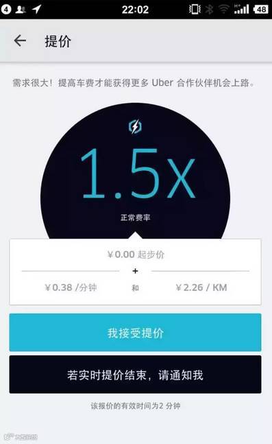 5、神奇的区域加价算法,可以随时针对某些区域加价,这个传统出租车没有,注意我说的是随时。也就是人多车少的地方,Uber还是会提高乘客的打车费,可能从1倍-3倍不等。