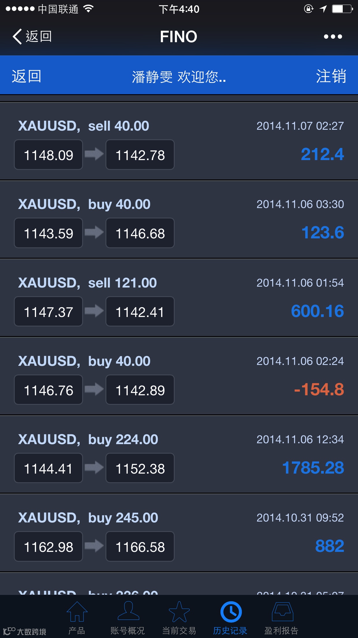 ①、点击最下方阅读原文链接进入福诺fino交易平台(fino为英国金融交易平台),直接登录该客户的真实账号。