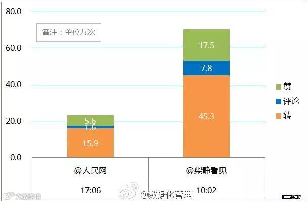 可以发现新浪反应最快,但是播放量却只有不到23万次,失败。网易视频基本上可以忽略了,反应也慢效果也不好。但是@新浪视频于15:47发了一条微博效果确实不错的,转评赞达到2万次。