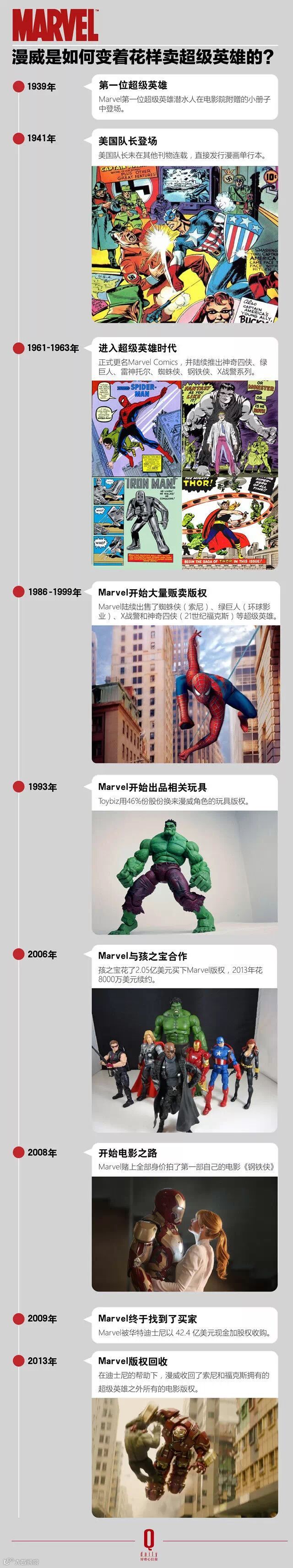 如果说用一句话概括漫威公司在过去 75 年所做的事,那么就是不断地推出、贩卖这些虚拟世界里的英雄形象。从漫画到电影,从游戏到周边衍生品。