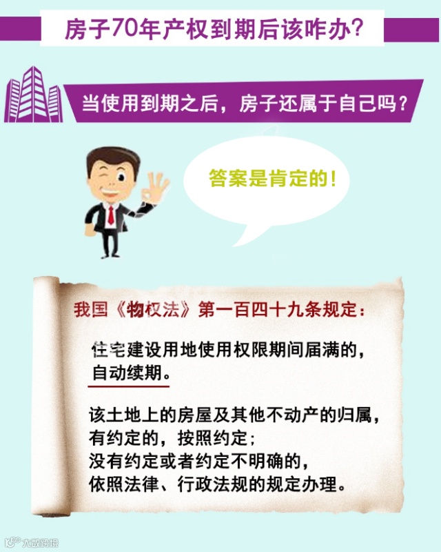 近日,一篇有关“房地产税加快进入立法、中央取消房产证70年权限”的文章,吸引大批网友围观。虽然相关部门随后就进行了辟谣,但对于大多数人来说,房子这最重要的财产可不容一点马虎!70年后,我们的房子还属于我们吗?到期后,我们又该做点啥?看完下面的图,你就能找到答案。