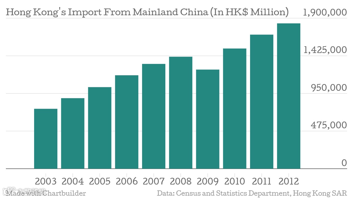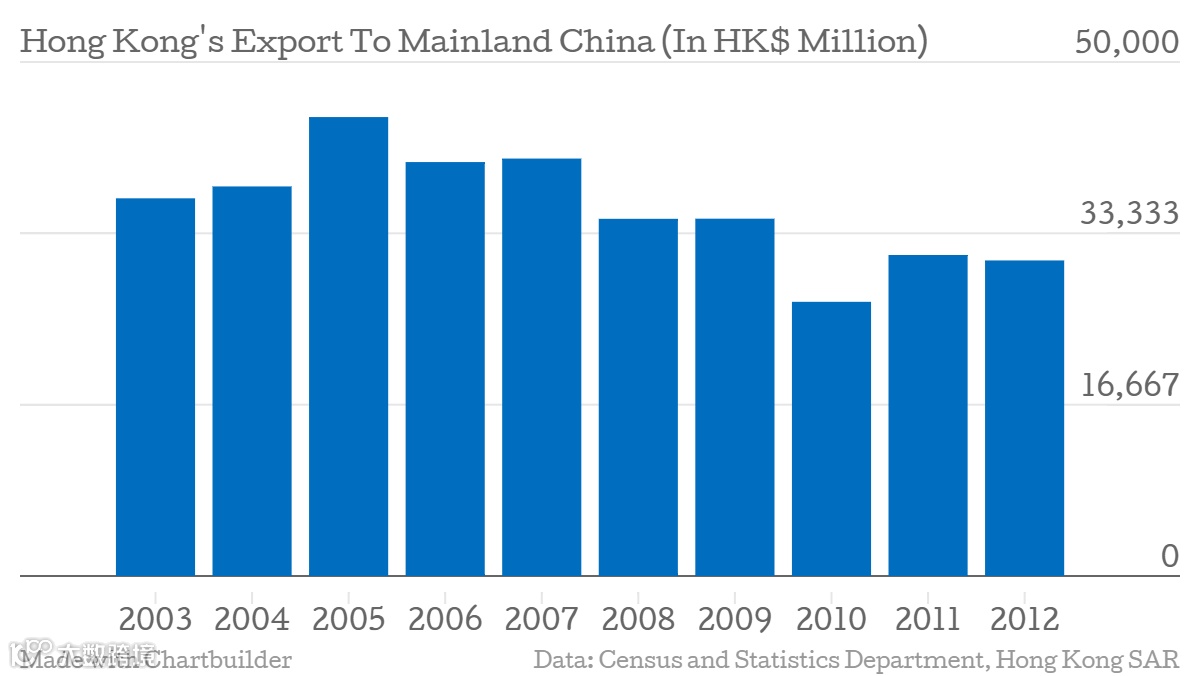 自1997年香港成为中国管辖下的一个特别行政区以来,这座城市采取了各种措施以强化它与内地之间的经济联系,尤其是贸易伙伴关系。这个全球第二大经济体从香港吸纳了价值248亿港元(32亿美元)的出口货物。根据政府数据,香港现在是大陆第二大贸易伙伴,仅次于美国,而大陆自1985年以来就一直是香港最大的贸易伙伴。