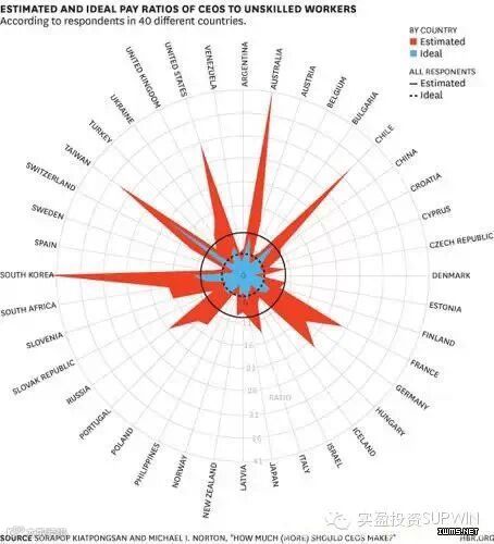相信绝大多数的人都会认为CEO的收入是超高的。那究竟有多高呢? 这样来说吧,如果美国的普通工薪族以美国CEO的标准发工资的话,平均每个人每年都能有200万美元的收入。《哈佛商业评论》用图表直观得对比了公司高层与普通员工收入的巨大差距。