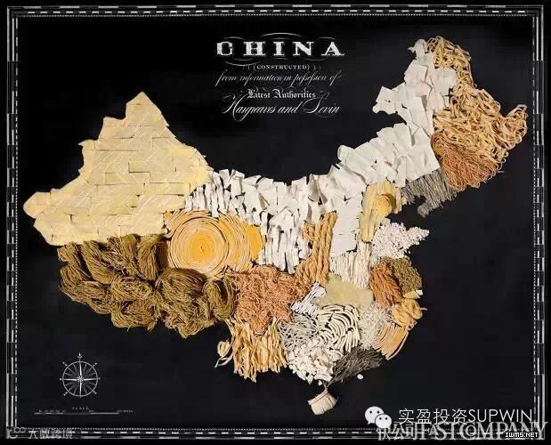 摄影师亨利·哈格里夫(Henry Hargreave)与食物造型师凯特琳·莱文(Caitlin Levin)合作制作了一系列用各国最有代表性的食物拼成的美食地图。美国的地图由玉米和谷物拼成,日本由海草拼成,意大利用番茄拼成。制作好后,再把地图拍摄下来,创作出了这个图表与视觉艺术相结合的作品。