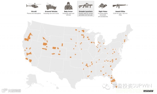 美 国一名叫达伦·威尔逊(Darren Wilson)的警官枪击了手无寸铁的青少年迈克尔·布朗(Michael Brown)之后引发了强烈的社会反响。之后,媒体又曝出大量密苏里弗格森市的警察身穿迷彩服、带着防毒面具,全副武装得站在装甲车前的照片。这些事件反 映出一个令人不安的事实,那就是军队为绝大多数的地方警局提供了武装装备。《纽约时报》根据从五角大楼收集到的信息做了一个图表,表中显示了自2006年 起军队为地方警局提供武装装备的数量,以及通过这项1033武器装备转移计划转移出的装备都被分派到了哪些地方。表中还统计了各种不同类型的装备——飞 机、直升机、装甲车、防弹衣、枪榴弹发射器、夜视装备、突击步枪从军队被转移到地方政府的数量。