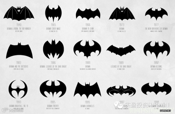 蝙蝠侠的招牌图案不仅仅是为了看上去炫酷, 它还有另外一个重要的作用: 当哥谭市遇到危机时, 巨大的蝙蝠侠图案就会投射到天空上向蝙蝠侠发出求救的信号, 接下来就轮到他大显神威了。 蝙蝠侠的Logo最初是于1940年设计的, 至今为止的75年间它经历了怎样的变化呢? 根据这个信息图表, 布鲁斯•韦恩(Bruce Wayne, 蝙蝠侠真名)为他正义化身的标志总共做了30次修改. Calm the Ham网站的凯瑟琳•拉韦尔(Cathryn Laver) 汇总了至今为止的图案制成了这个图表. 其中涵盖了从上世纪40年代的初版漫画中的首次亮相, 到60年代亚当·韦斯特(Adam West)主演的真人剧集, 到80年代Frank Miller创作的黑暗系漫画, 再到乔治·克鲁尼(George Clooney)在90年代出演的电影, 最终是当今诺兰导演的票房大热《黑暗骑士》三部曲.。图表反应出一个看似简单的蝙蝠图案可以有丰富的想象和无限的可能性, 这些Logo从细微的调整上反映出了不同的审美。