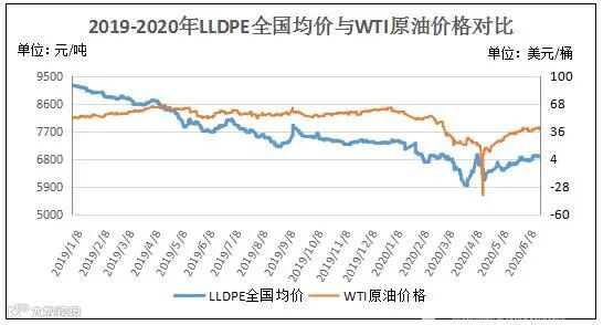 图1 2019-2020年LLDPE全国均价与WTI原油价格对比