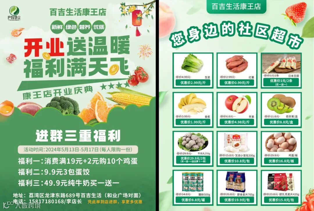 2024年伊始,我们巴特慧众迎来了一波又一波的好消息,先有百吉生活燕岗店,龙津店,南景园店等重装进行新模式的全新升级!后有五羊店,晓园店等进行店面扩张升级成为大店,这次巴特慧众·百吉生活康王店在5月13日举行盛大的开业仪式。现场鲜花簇拥;高朋满座;热闹非凡。