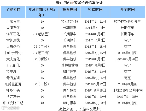 国内PP主要消费领域为塑编、注塑和BOPP,其中用料最多的BOPP行业8月开工率约60%,但受制于环保政策加码的影响, 9月开工率维持在55%左右。但10月国庆长假结束后,华北地区环保政策有望松绑,将会令下游对PP需求有小幅增加预期。短期内受限于国庆以及月末停销核算等因素的影响,PP价格将不会有太大变化,主要以盘整为主。但9月检修装置多数在月底开始复产,预计10月国内PP产量将会增加约9万吨,同时叠加国庆假期累库效应,国内以及港口库存预估将同比增加5-8%,令10月PP供应压力增大。10月油价如无较为重大的利好刺激,受制于后续原油需求放缓的影响,布伦特原油价格将可能下探至60美元/桶附近震荡,而作为下游产品的PP也将会随油价下跌而有所回落。同时考虑到PP新装置投产产能释放,将会加大供应面的压力,从而拉低PP现货价格。初步预测,10月PP粒料拉丝均价将会维持在8500-9300元/吨区间运行。(作者:广东塑料交易所行业分析师 孔祥泽)