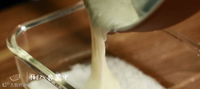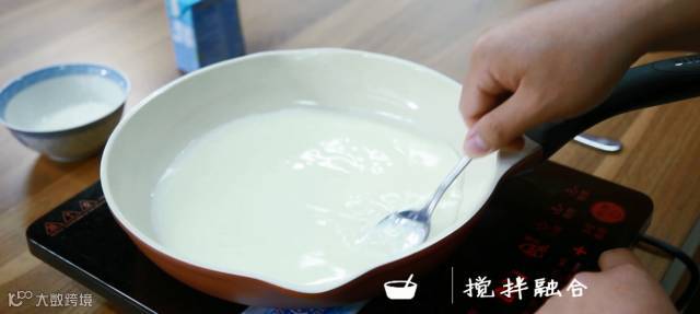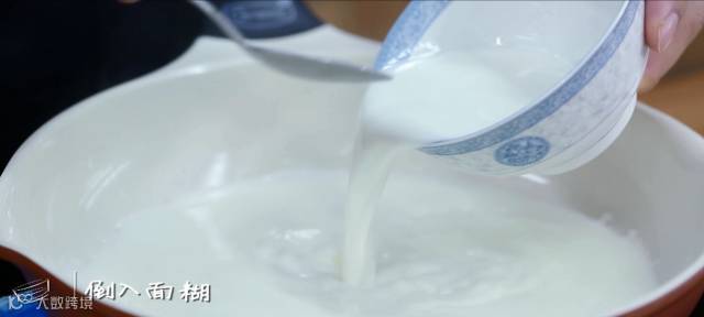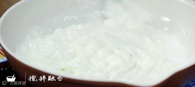♥往羊奶里倒面糊的时候,要迅速搅拌,变粘稠后即可关火。