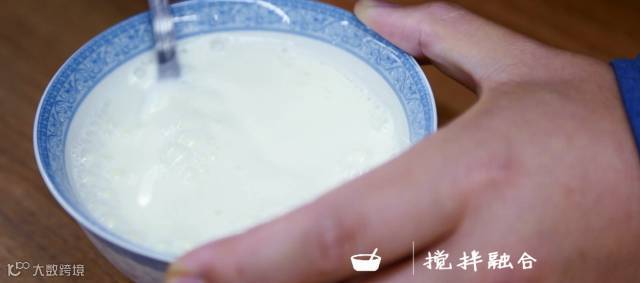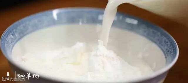 ②倒入玉米淀粉以及80g羊奶
