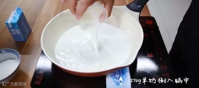 ④锅中倒入170g羊奶
