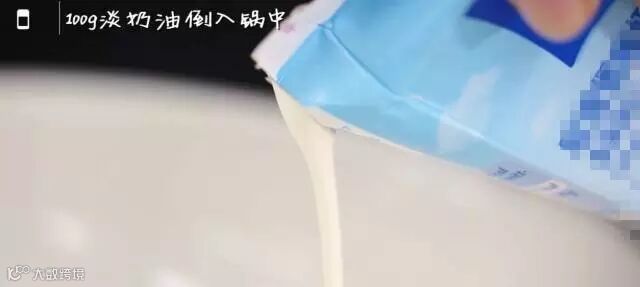 ⑤倒入锅中100g淡奶油
