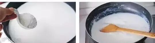 3、煮的期间注意要不停的搅拌,保证奶液均匀受热。