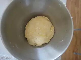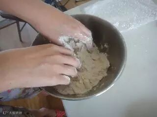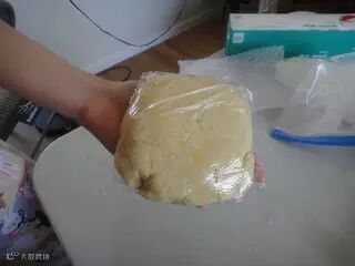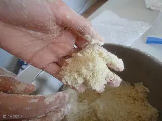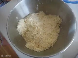 像这样粗颗粒的时候就揉好了,尽量没有黄油块残留。