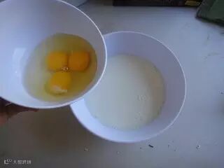 备料。挞皮:面粉230克,黄油130克,糖30克,鸡蛋一颗;馅:鸡蛋3颗,糖40克,百吉羊羊奶5条。