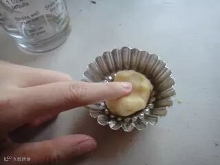 放入挞模,用手指一点点摁扁,让面团变薄变大。