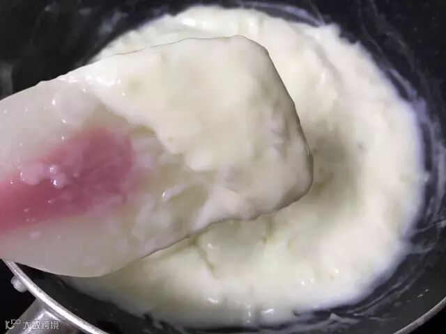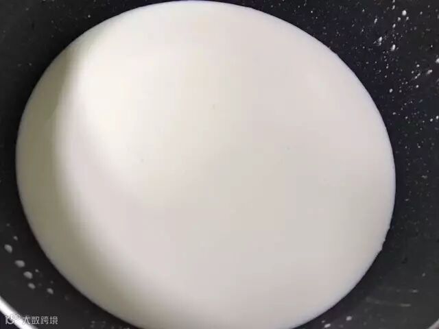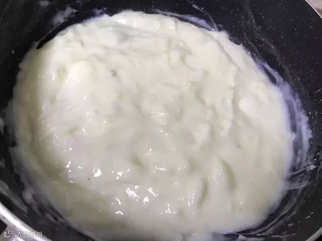 1、百吉羊羊奶、玉米淀粉、糖混合倒入不粘锅,小火慢慢加热。