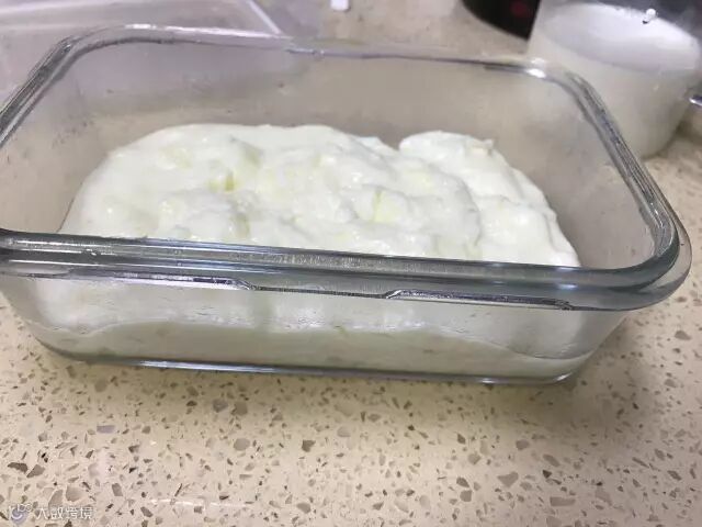 4、羊奶糊倒入抹了油的容器内,冷却后放冰箱冷藏1至2小时,凝固成糕状。