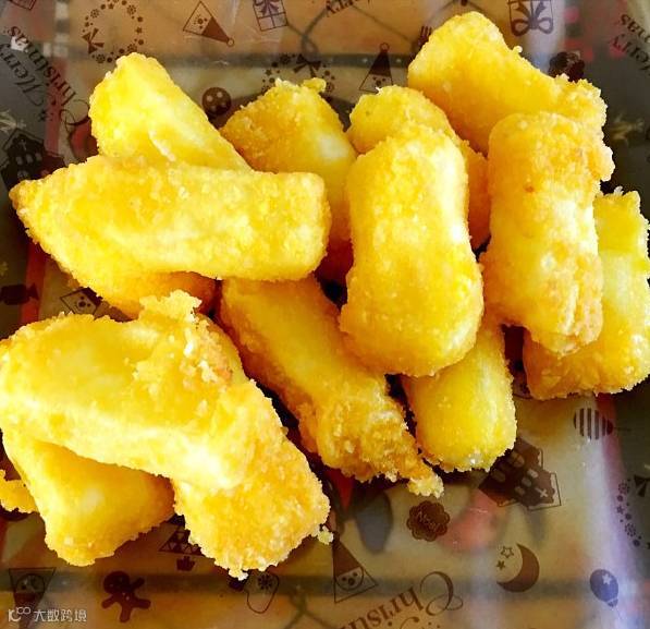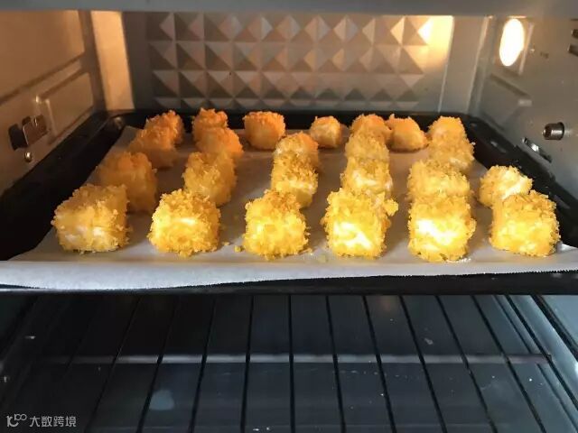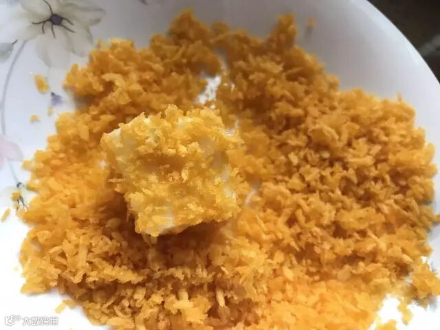 2、步骤9可以手抓着面包糠往奶块上撒。面包糠可以事先放点油混合均匀,加了油香一点,不加也可以。