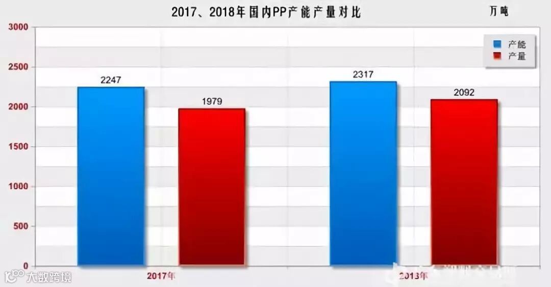 2018年国内PP产能、产量继续齐步增长。截至目前,国内PP总产能达到2317万吨/年,同比增长3.12%;国内PP产量累计约2092万吨,同比增长5.71%。