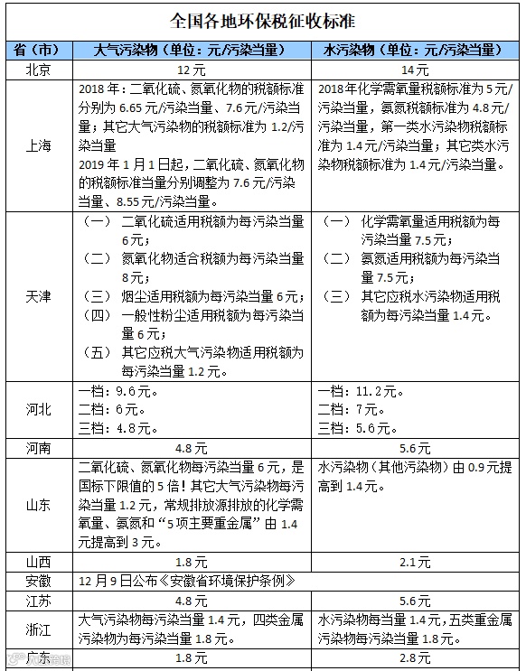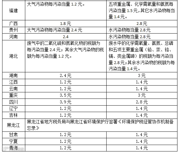 附件:全国各地环保税征收标准