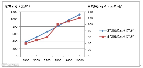 图1 煤制烯烃和油制烯烃成本对比图