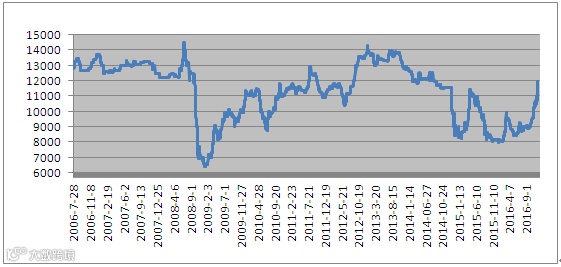 图2.2006-2016年主流市场PS价格走势图