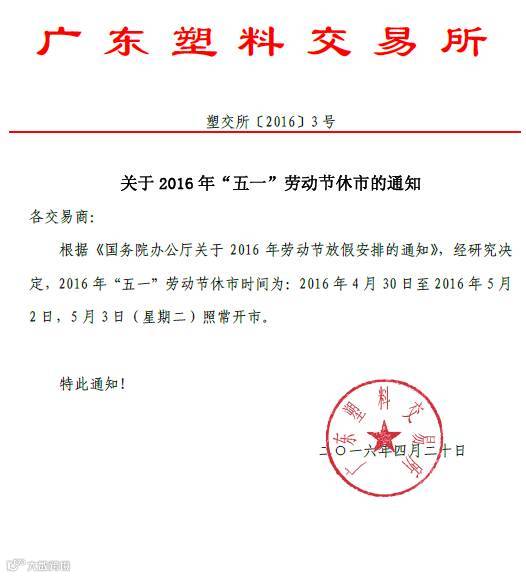 关于2016年“五一”劳动节休市的通知