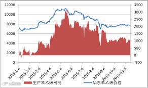 苯乙烯,由于国内产能不能满足需求,物以稀为贵,2014年9月前价格一直在11500元/吨以上,是塑料行业公认的高利润产品。2014年,由于原油出现暴跌,下游需求不佳,苯乙烯价格出现大幅走低,生产企业由盈转亏,国内扩能计划纷纷延迟。进入2015年,苯乙烯再次爆发魔鬼产品的任性,在成本和炒作下,生产利润成功扭亏为盈。
