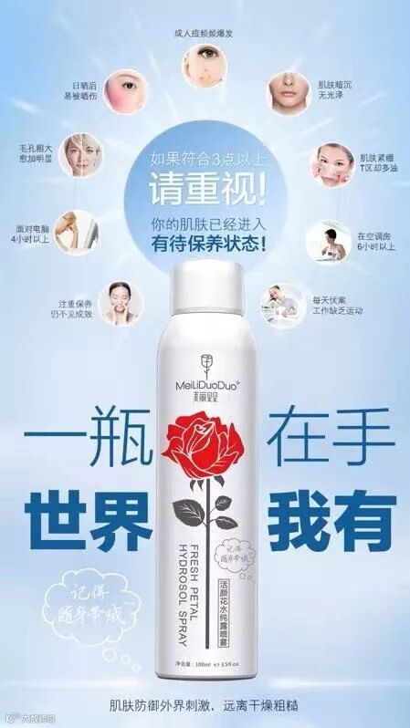 替代:爽肤水洁脸后喷纯露,用手轻拍吸收,增加皮肤含水量。