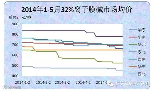 图1 2014年1-5月32%离子膜碱市场均价