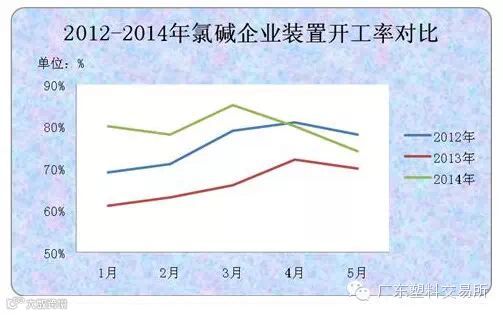 据广东塑料交易所分析师刘蕊茂统计,2014年前5月烧碱市场扩能的步伐减缓,新增烧碱30万吨,退出26万吨,但产量却继续增大,1-4月烧碱累计产量为1036.9万吨,同比增长14%;一季度全国74家重点氯碱企业累计亏损1077万元,较去年同期亏损逾5亿元的程度有所降低。与此同时,在国家淘汰落后产能及环保相关政策高压下,企业寻求转型的意愿更加强烈,新疆天业、齐鲁石化等大型氯碱企业更是剥离氯碱作为主业务的比例,加剧了氯碱行业看空的氛围。另外,新疆天业集团集装箱烧碱试装通过验收,及安徽华塑泰州港海企化工仓储码头投运等拉开了氯碱企业自建物流的序幕,企业不再局限从产品原料成本、人工成本上面下功夫,物流及销售渠道的拓展也成为行业竞争的“新方向”,河北盛华、昊华宇航、山东信发等氯碱企业积极参与电子盘交易就是例证。