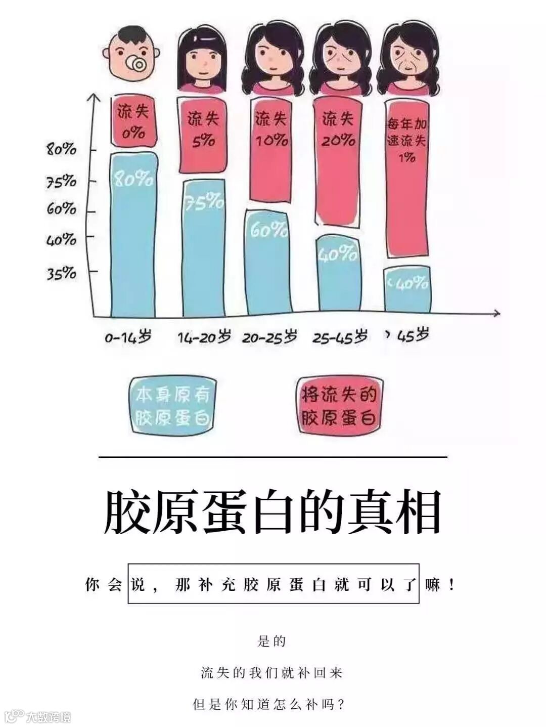 💕年龄的增长,出现皱纹,肌肤老化,就是胶原蛋白流失的过程,胶原蛋白是人体内含量最多的一种蛋白质,还细胞外基质的重要组成部分,形成一张强而有力的弹力网,充分保持人体活力,是人体的生命之本,更是维持人体“三张皮肤”和软骨弹性的主要物质,可以说,生命的一切运动都离不开胶原蛋白,否则人体健康尺将归零,生命亦不复存在。