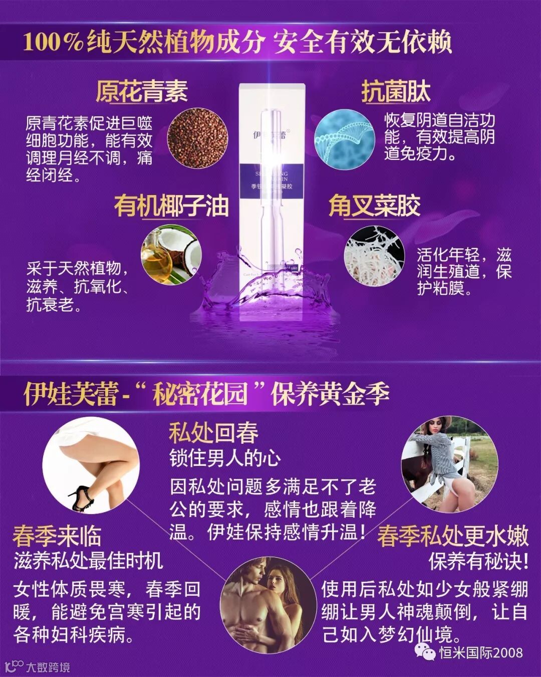 滋养子宫卵巢,平衡内分泌,改善性冷淡、阴道干涩;恢复年轻态至少5-15年~