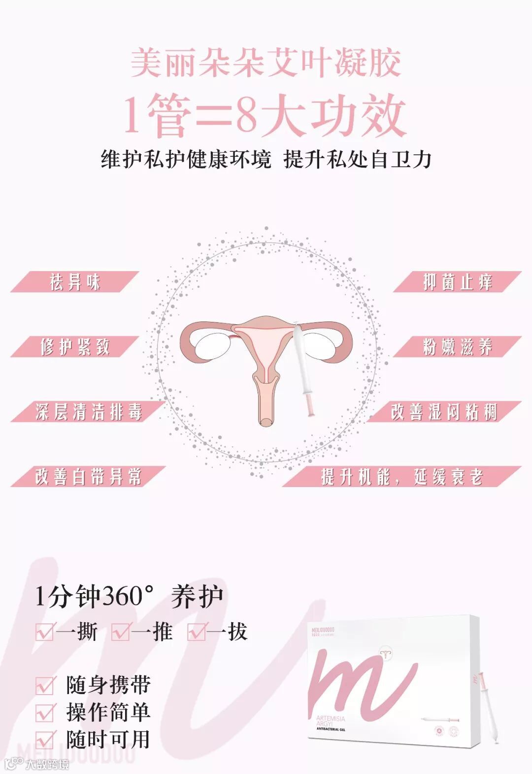美丽朵朵·艾叶抑菌凝胶,改善女性妇科炎症,助力产后修复,重塑紧致私密。恢复紧致、粉嫩、水润私密,赶走性冷淡。