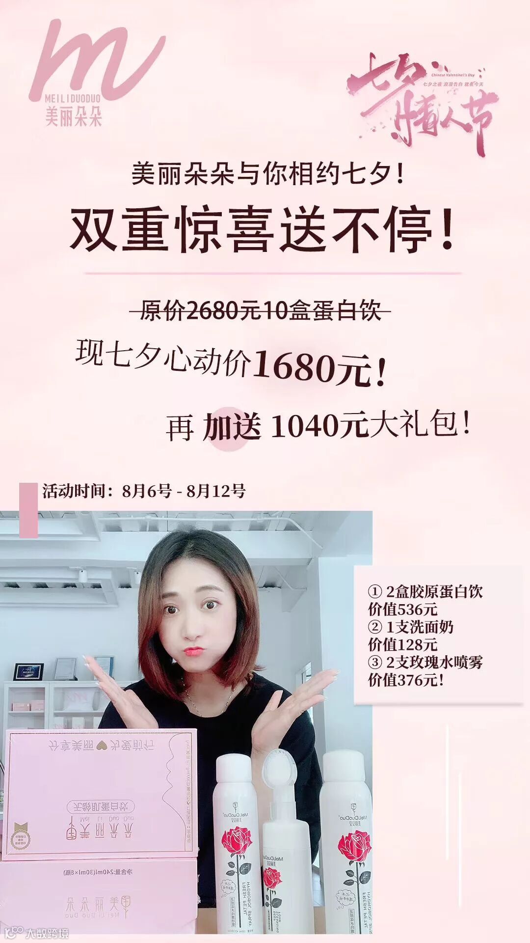 七夕有约,3个月量的胶原蛋白,只要1680 元!一个月560元,一天不到19元,还有加送价值1050元大礼包ヾ(@^▽^@)ノ七夕,美丽朵朵承包你的美!