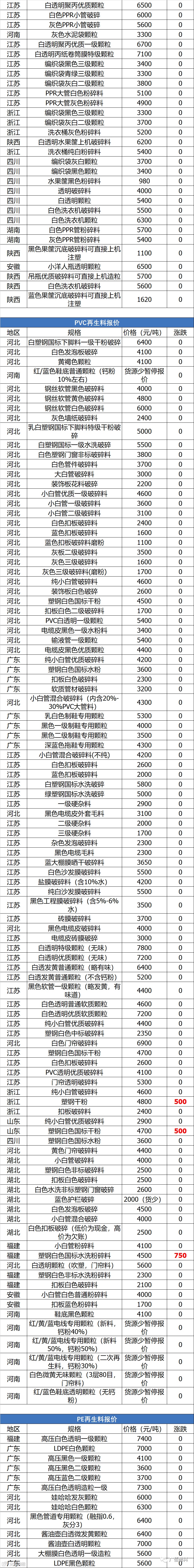 5月26日塑胶再生料报价