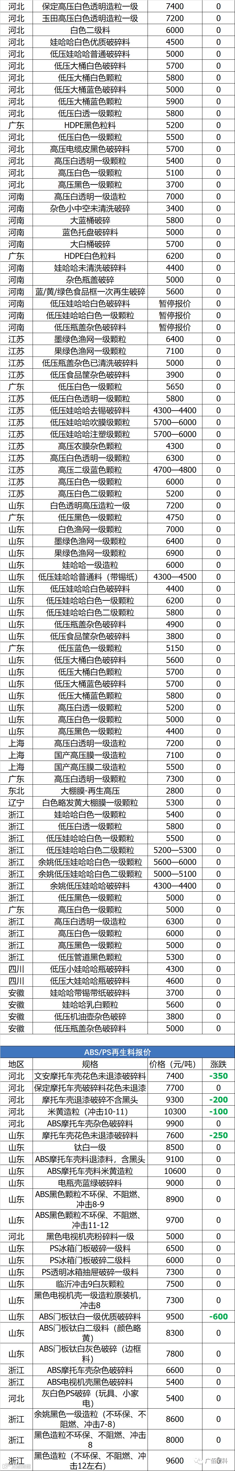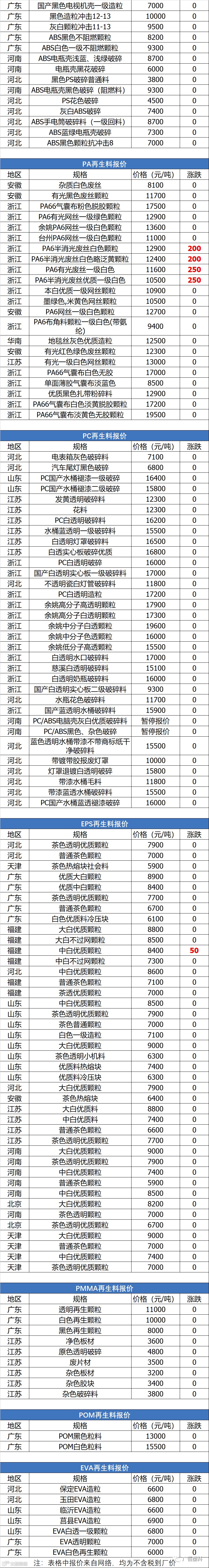5月20日塑胶再生料报价