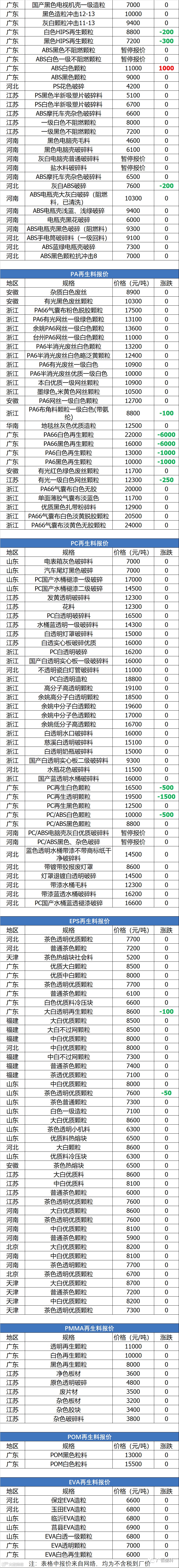 11月12日原料报价