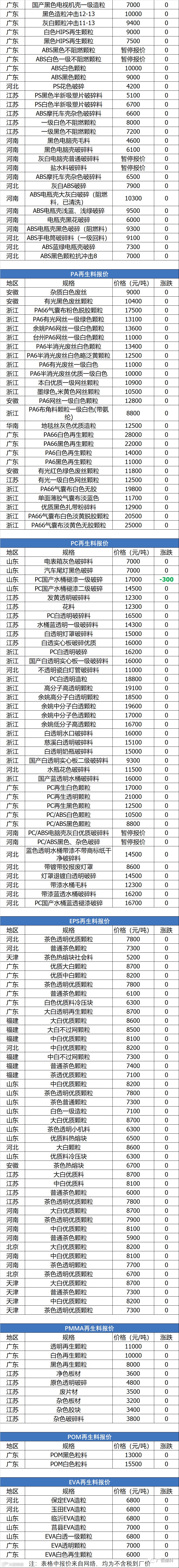 11月4日回料报价