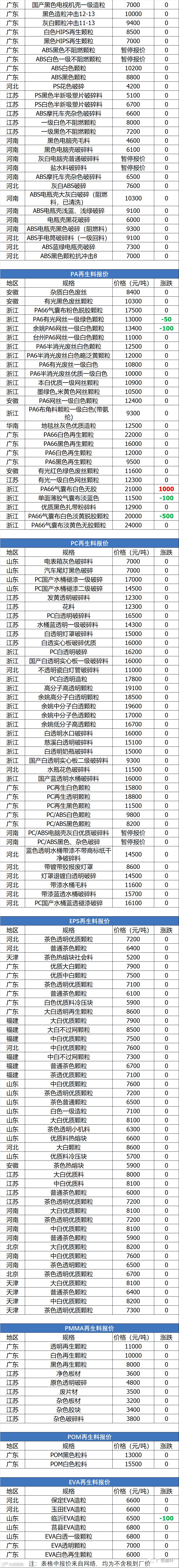 11月30日回料报价
