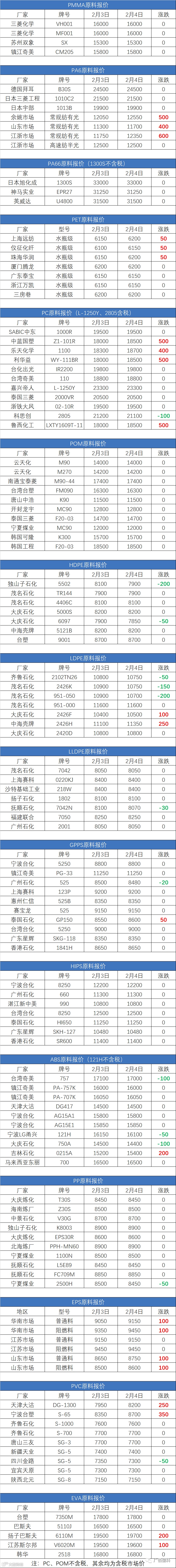 2月4日原料报价