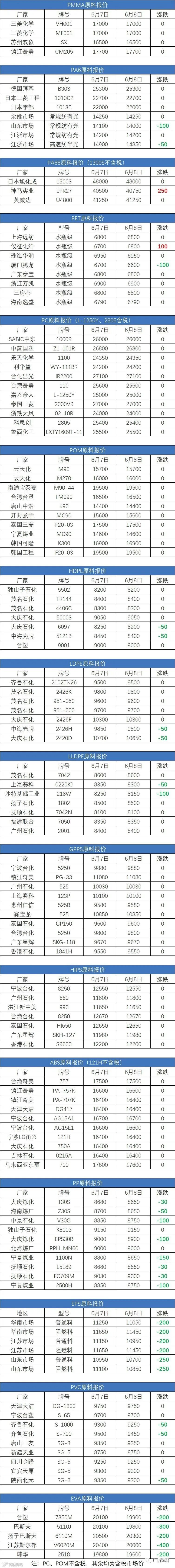 6月8日原料报价