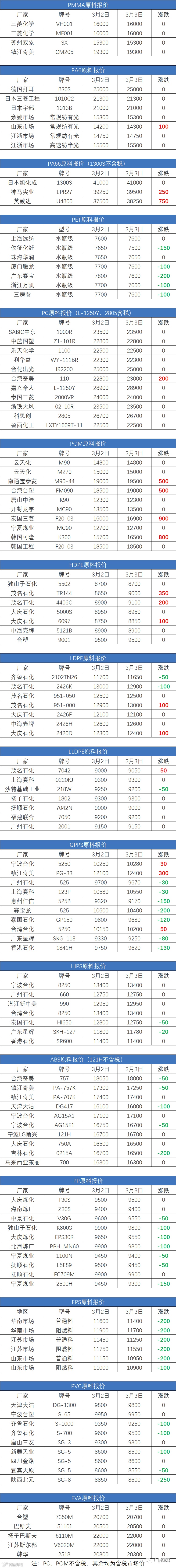 3月3日塑胶报价