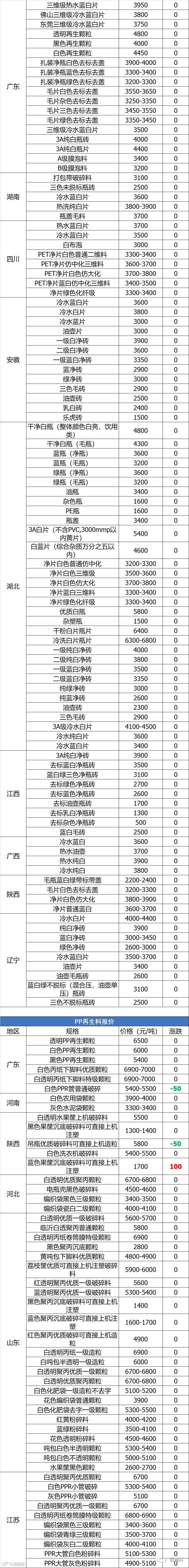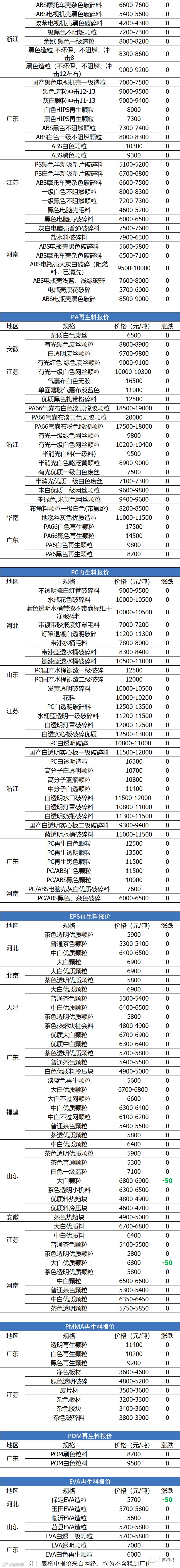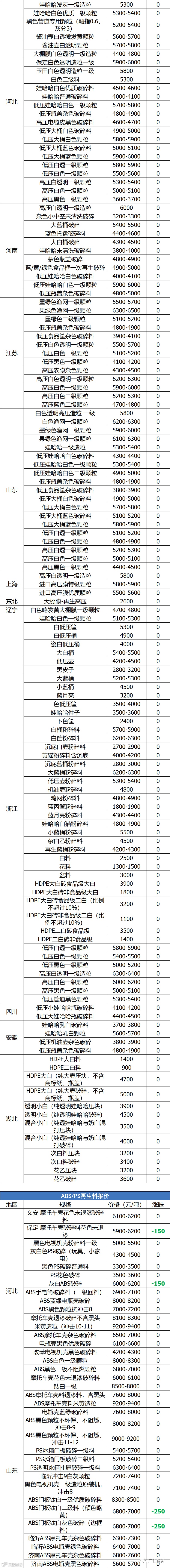 导读:关注公众号每天推送最新回料报价