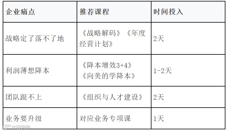 如果你的企业总遇到“战略定了落不了地”的问题,两门核心课可以选: