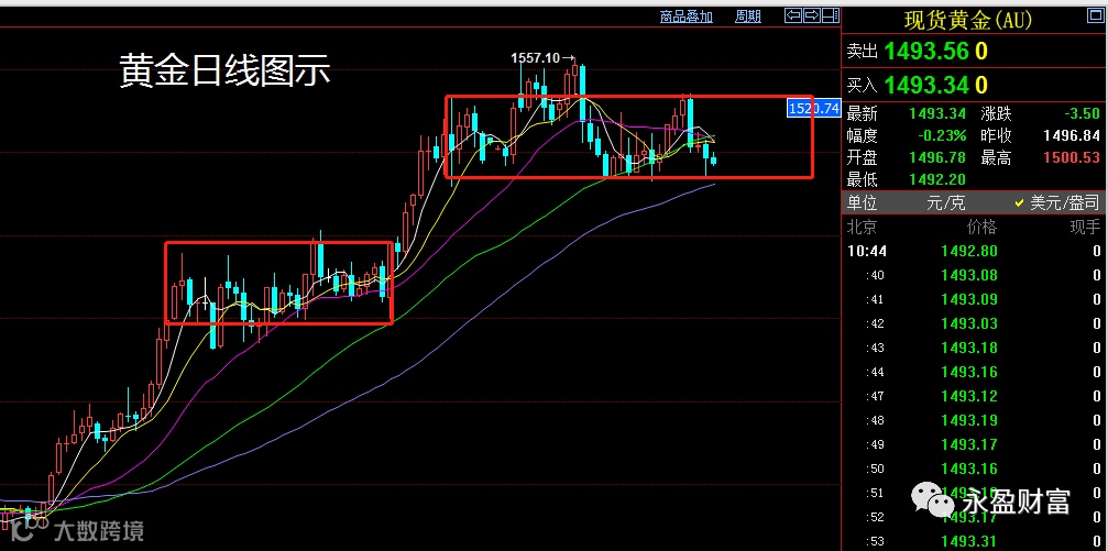 日线方面:在上周五触及1486位置出现的强力拉升,今天早盘未能延续多头,价格依然是受阻在1500的关口。今天的话行情有望继续测试下方1484-1486的支撑区域。